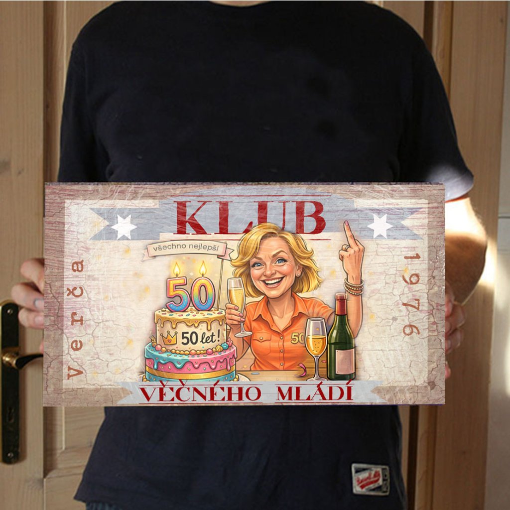 Originální cedule na masivní dřevěné směsné desce je tipem na vtipný a originální dárek k narozeninám.