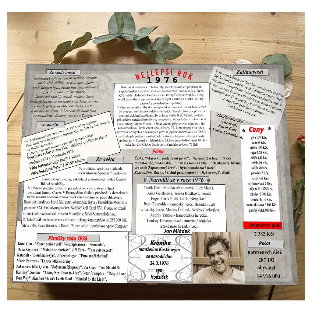 Box s událostmi roku 1976 jako dárek k narozeninám