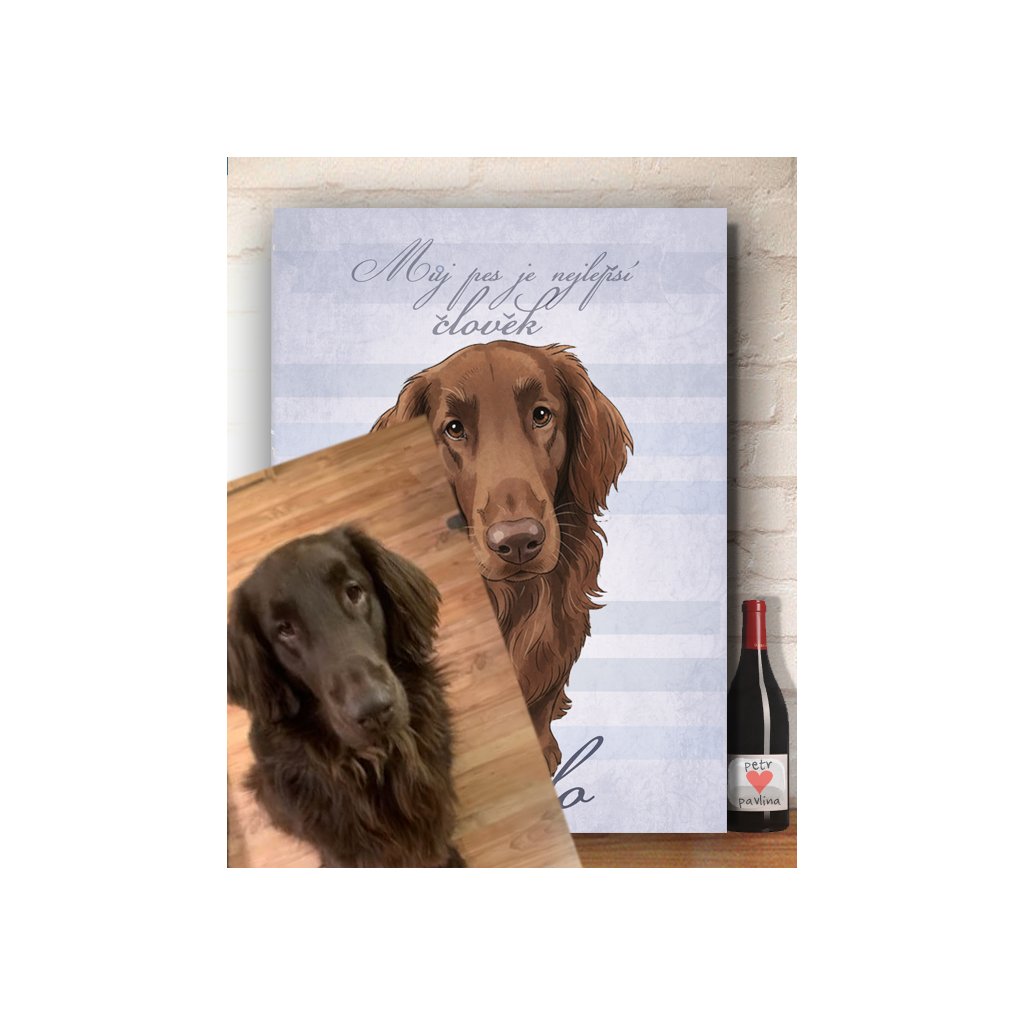 Velký obraz na masivní desce s vaším pejskem. Pošlete nám fotku svého pejska a my vám z ní uděláme originální obraz.
