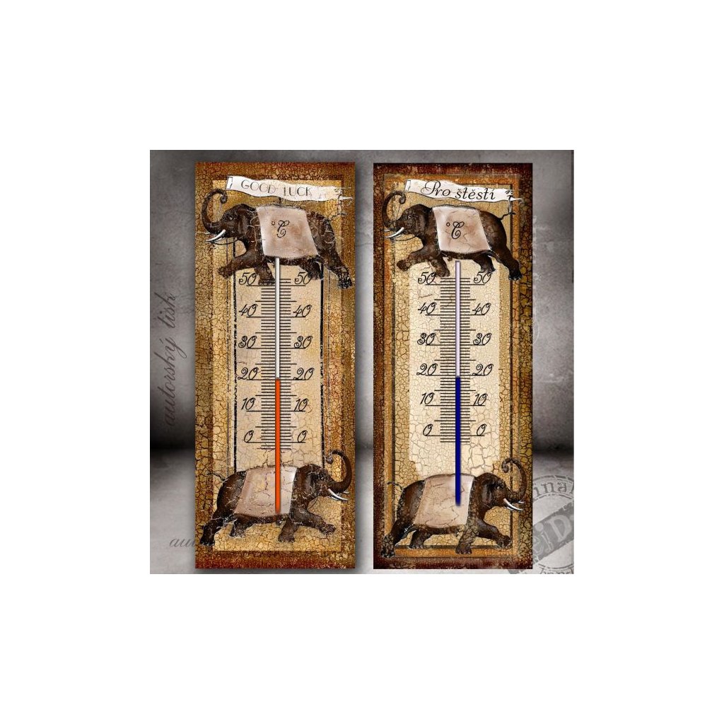 Retro pokojový teploměr s motivem slona