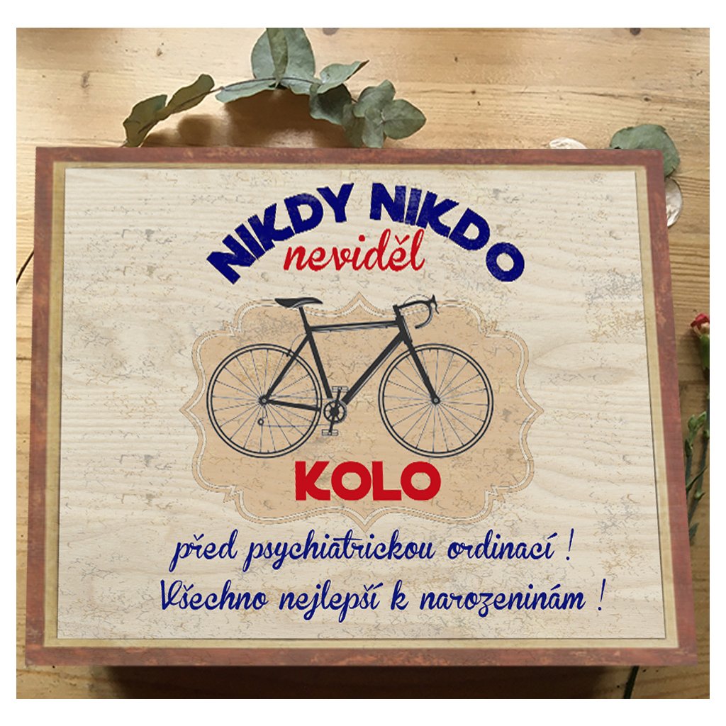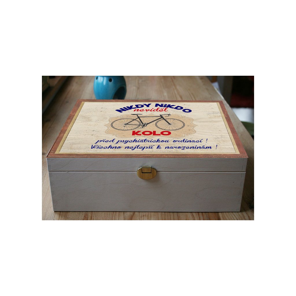 Kazeta, krabice, truhla se motivem kola a vtipným nápisem