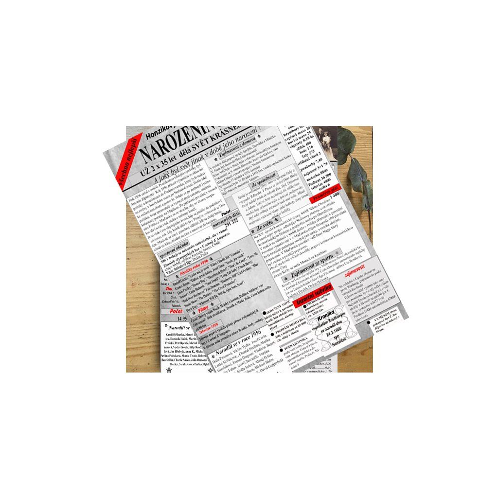 Noviny dále obsahují seznam osobností ze světa i České republiky, které se narodili v daném roce a také pro pobavení autentické inzeráty z daného roku, které nejlépe přiblíží rok sňatku.