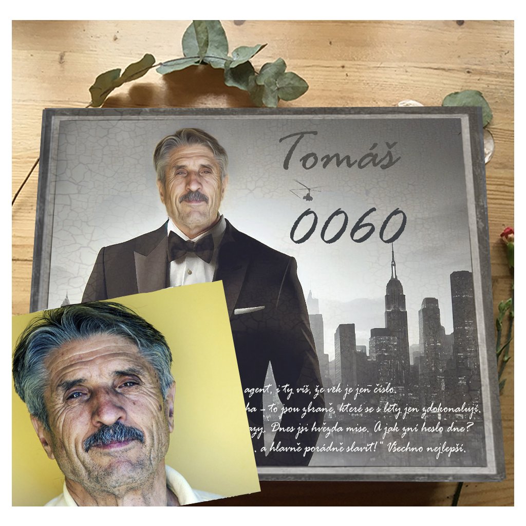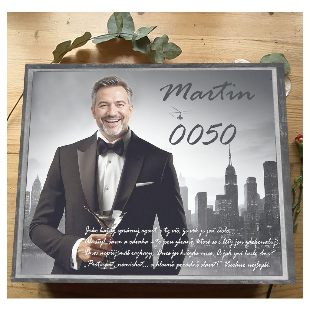 Box s Jamesem Bondem z vaší fotky k 60. narozeninám