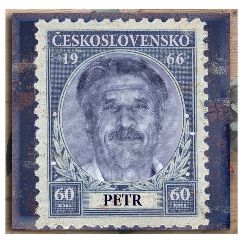 Obraz ve formě poštovní známky jistě oslavence nadchne.