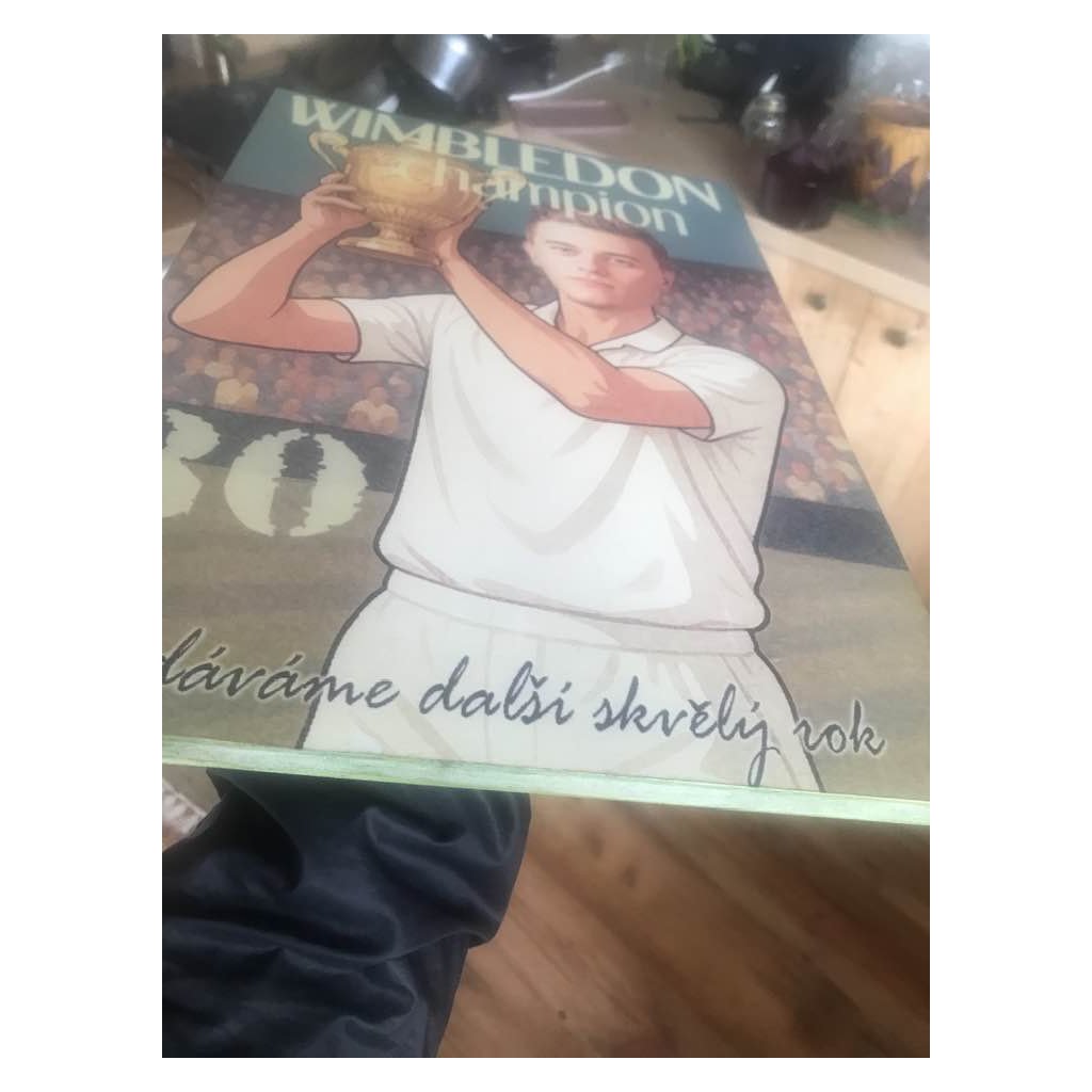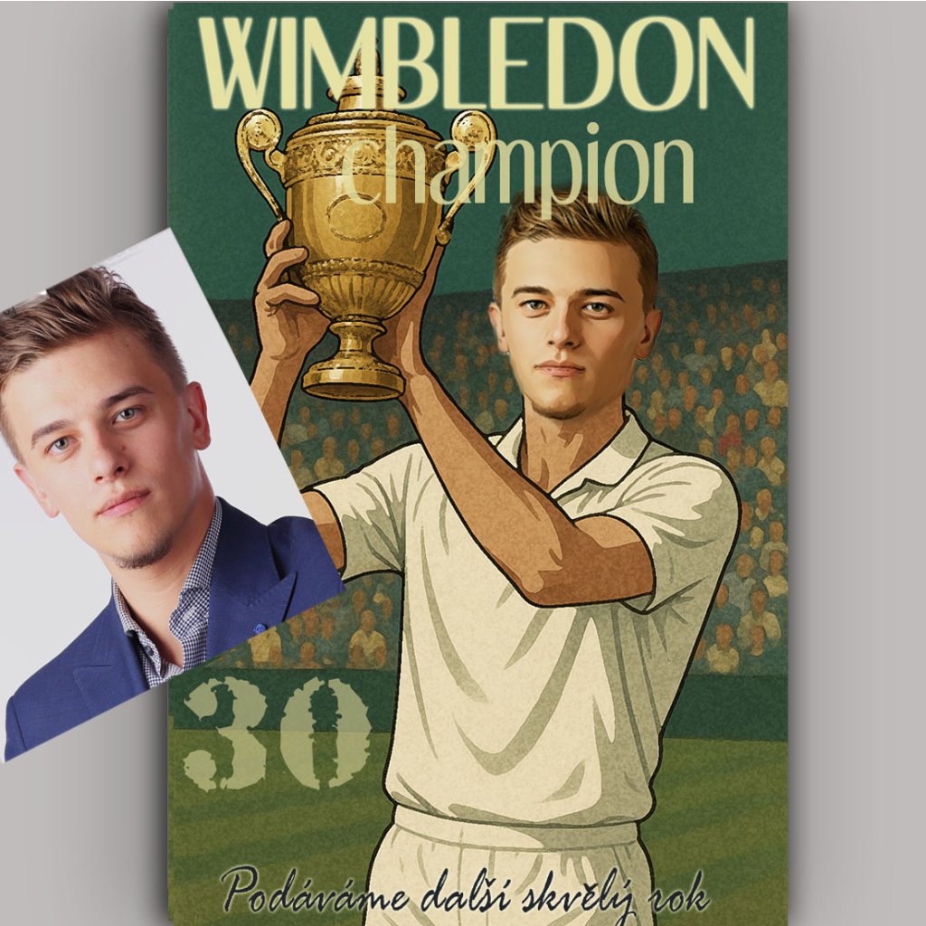 Pošlete nám fotku jako odpověď na přijetí objednávky a my vám z ní uděláme originální obraz. Obraz ve formě Wimbledonského vítěze.