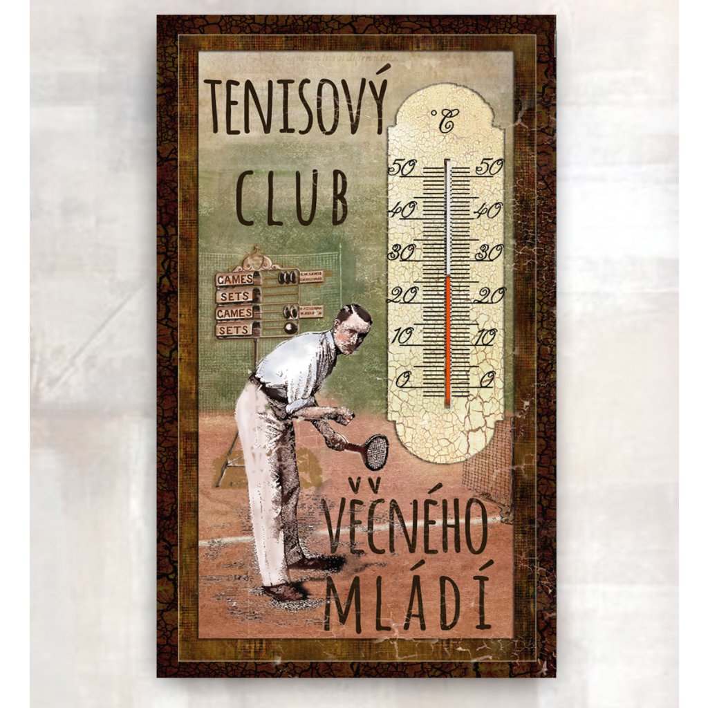 Retro teploměr s klasickou skleněnou kapilárou, myslivecký motiv